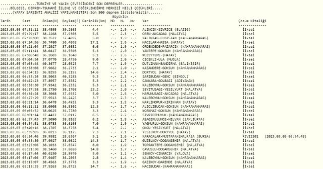 Elazığ sarsıntı mi oldu? Az evvel zelzele mi oldu? Son dakika Elazığ depremleri! 5 Mart AFAD ve Kandilli sarsıntı listesi!